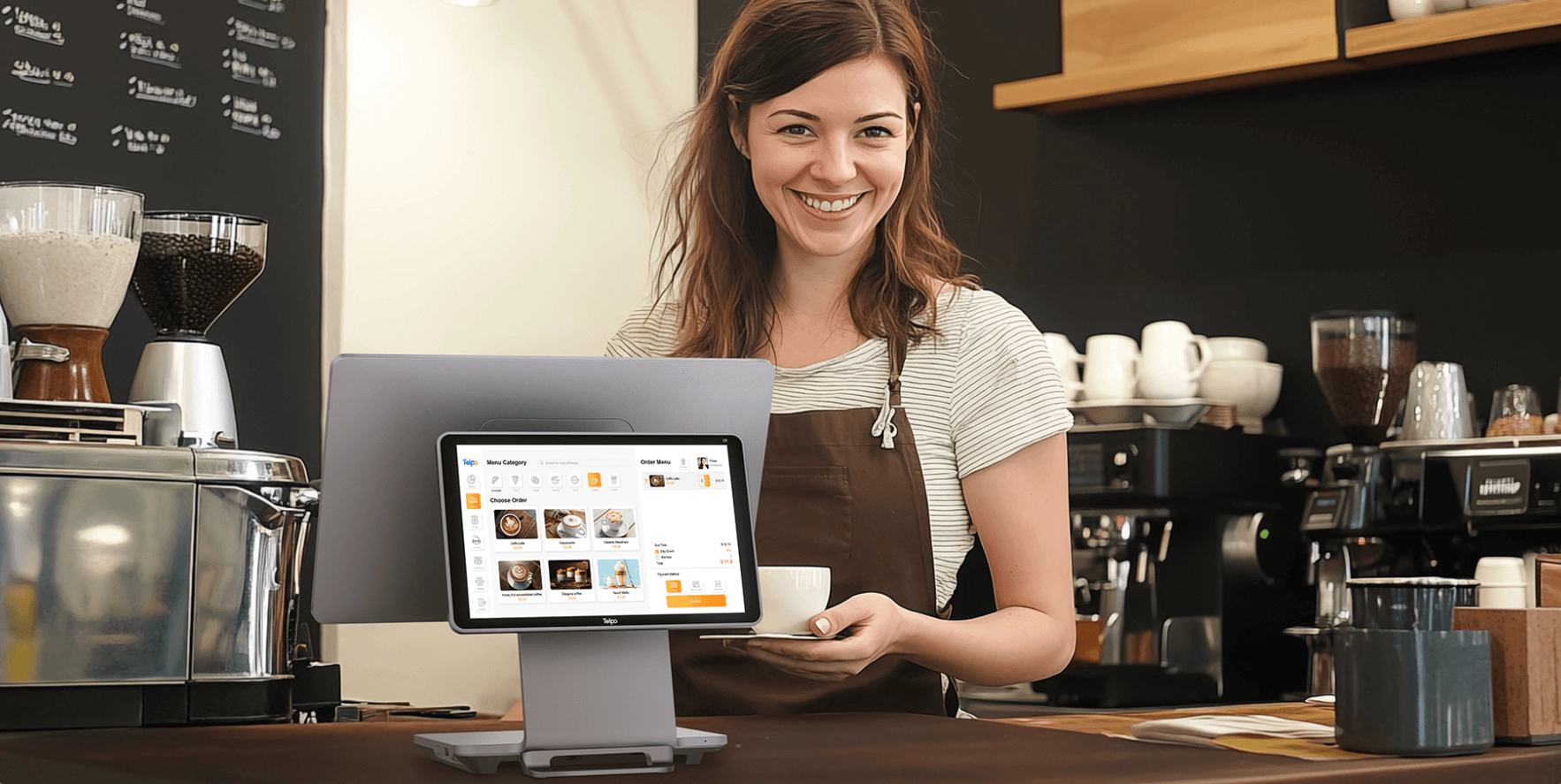A legmodernebb pénztárgép, amely nem foglal sok helyet a pulton, és két érintőképernyő mellett beépített fizetési terminállal és gyors, automatikus vágással rendelkező hőnyomtatóval rendelkezik.