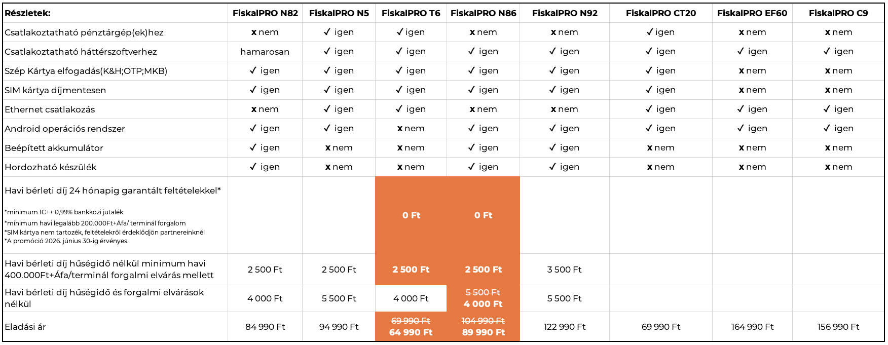 Az N5 és T6 készülékek esetén lehetőség van a bankkártya terminált csatlakoztatni a pénztérgéphez - nem kell a terminálba is beütni az összeget.